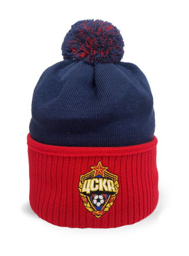 Шапка ПФК ЦСКА, цвет темно-синий, трикотажная, вязаная с флисовым подкладом