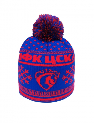 Шапка в фирменном стиле ПФК ЦСКА с помпоном.