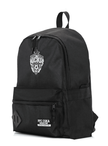 Вместительный рюкзак чёрного цвета изготовлен из полиэстера с водоотталкивающей пропиткой. Удобный рюкзак, имеет объемный наружный карман.