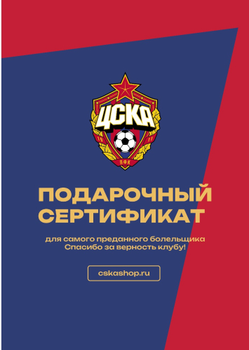 *Обратите внимание: срок действия подарочного сертификата - полгода с даты покупки. Данные сертификаты не принимаются к оплате в физических магазинах ПФК ЦСКА, могут быть куплены и применены только в интернет-магазине.